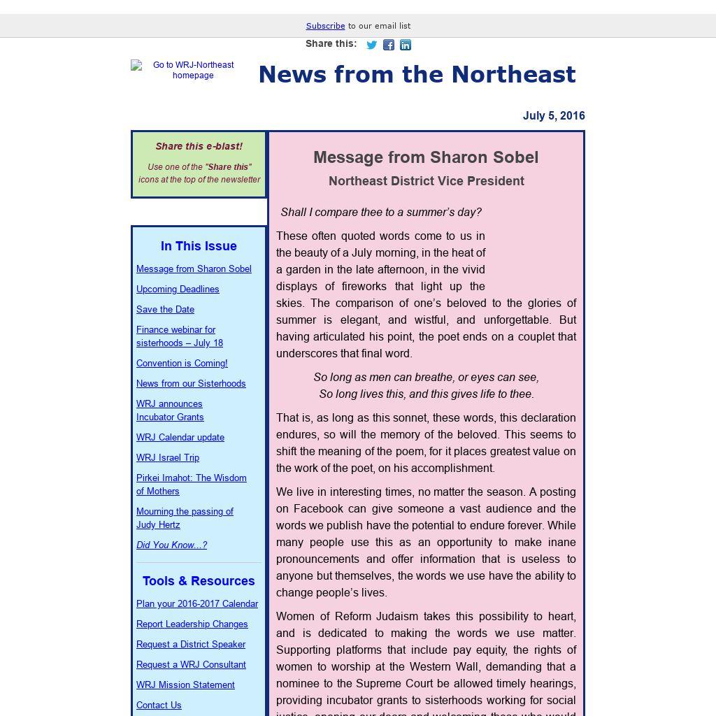 On every level, our words matter and will endure. The leadership in every sisterhood will find support in the board of the Northeast District, and in Women of Reform Judaism, for we are stronger together. And if only some of our words bring us to the reality of bettering the world, shining under the eye of heaven, then we can still say, “dayenu.”