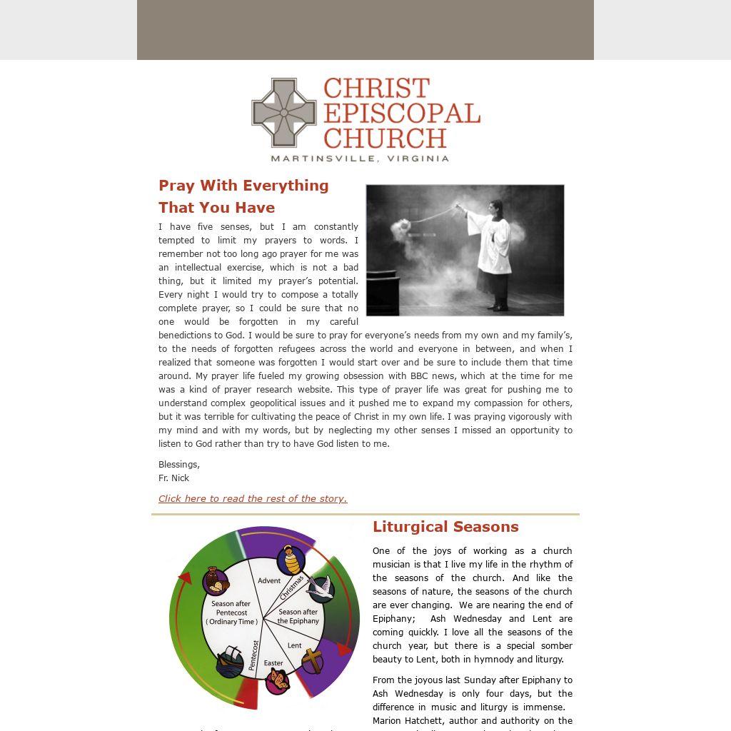 One of the joys of working as a church musician is that I live my life in the rhythm of the seasons of the church. And like the seasons of nature, the seasons of the church are ever changing. We are nearing the end of Epiphany; Ash Wednesday and Lent are coming quickly. I love all the seasons of the church year, but there is a special somber beauty to Lent, both in hymnody and liturgy.