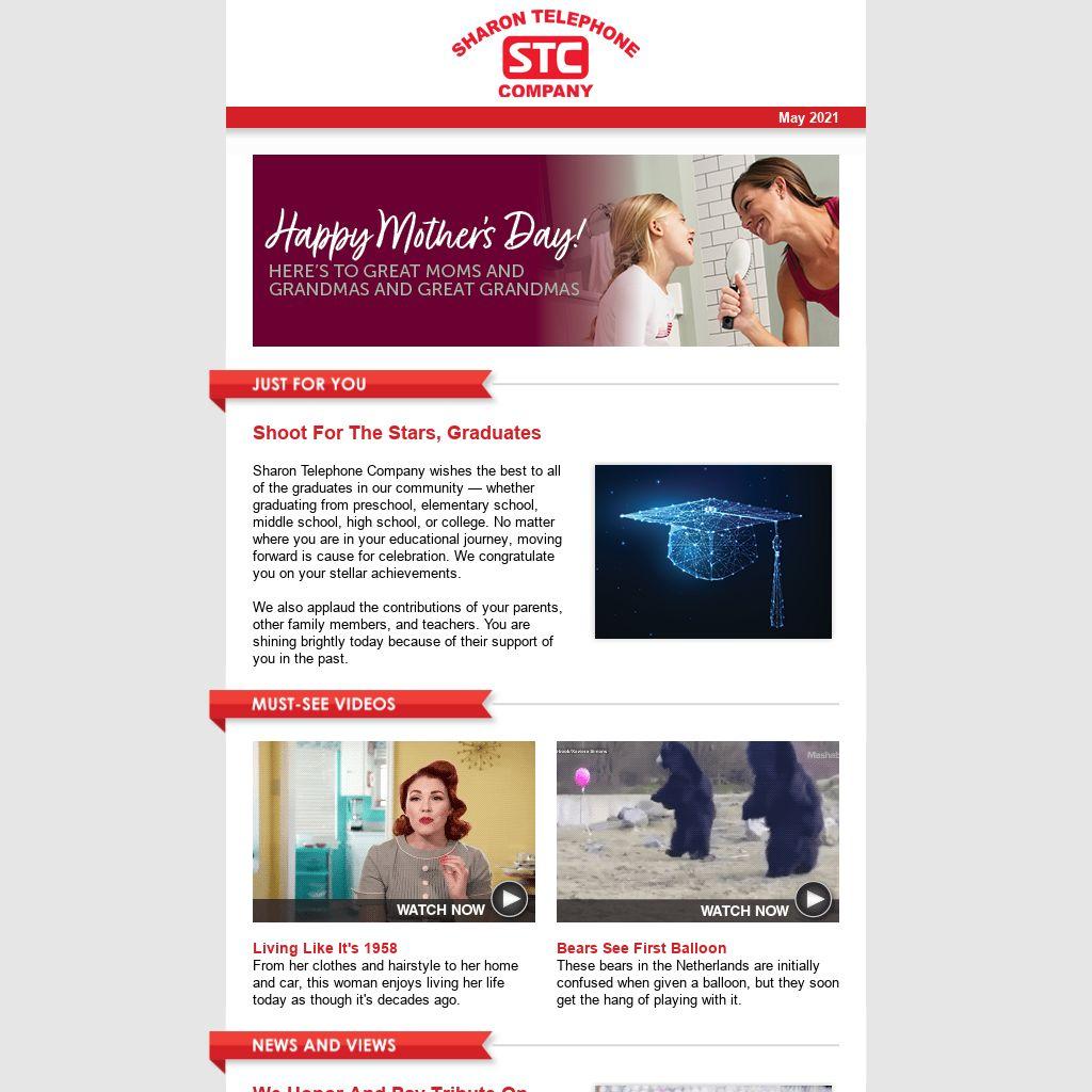 Sharon Telephone Company wishes the best to all of the graduates in our community — whether graduating from preschool, elementary school, middle school, high school, or college. No matter where you are in your educational journey, moving forward is cause for celebration. We congratulate you on your stellar achievements.