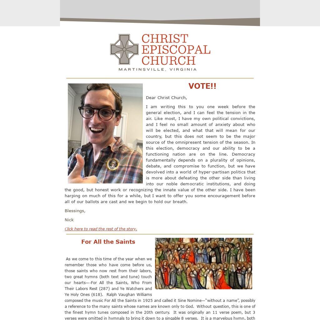 As we come to this time of the year when we remember those who have come before us, those saints who now rest from their labors, two great hymns (both text and tune) touch our hearts—-For All the Saints, Who From Their Labors Rest (287) and Ye Watchers and Ye Holy Ones (618). Ralph Vaughan Williams composed the music For All the Saints in 1925 and called it Sine Nomine—“without a name”, possibly a reference to the many saints whose names are known only to God. Without question, this is one of the finest hymn tunes composed in the 20th century. It was originally an 11 verse poem, but 3 verses were omitted in hymnals to bring it down to a singable 8 verses. It is a marvelous hymn, both tune and text!