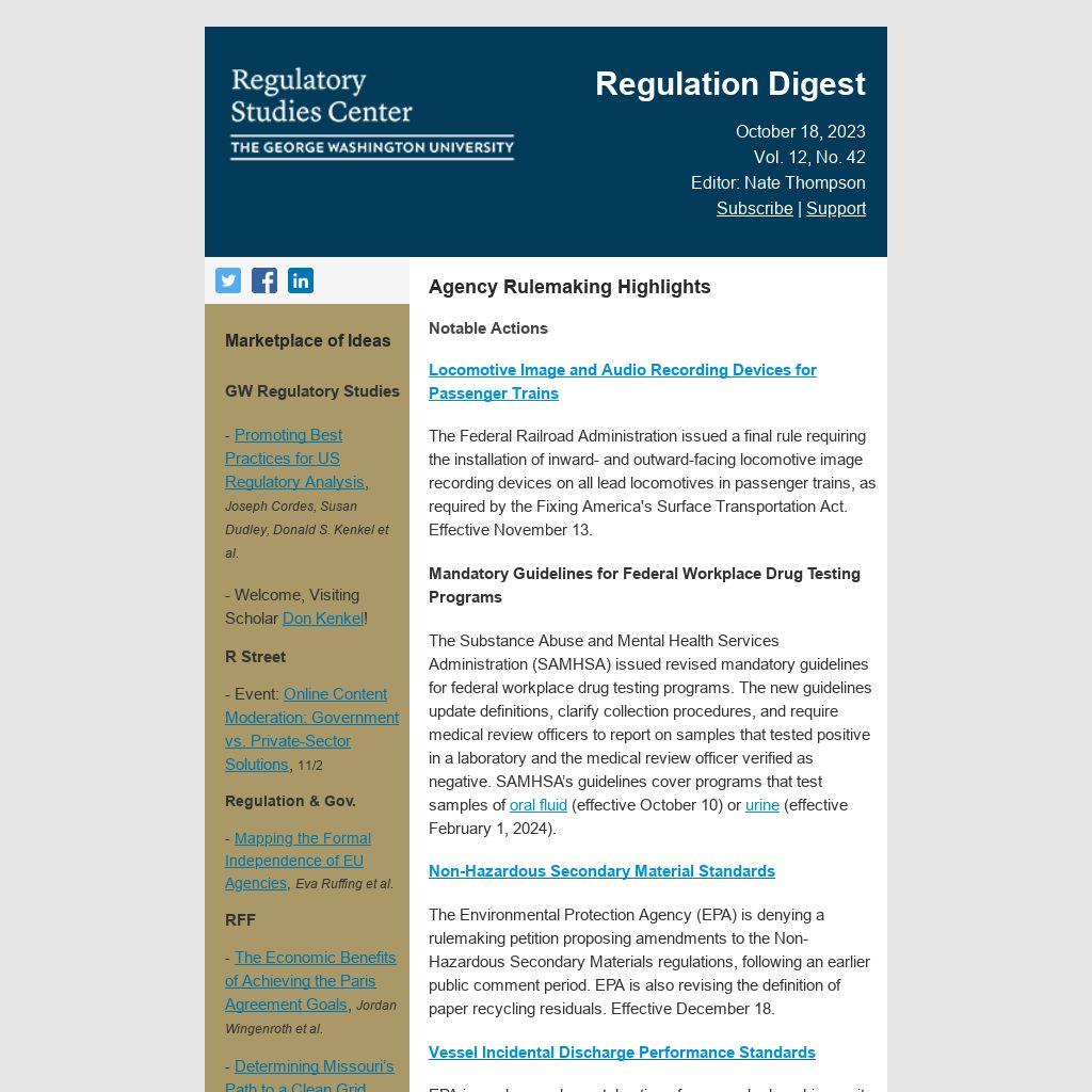 The Substance Abuse and Mental Health Services Administration (SAMHSA) issued revised mandatory guidelines for federal workplace drug testing programs. The new guidelines update definitions, clarify collection procedures, and require medical review officers to report on samples that tested positive in a laboratory and the medical review officer verified as negative. SAMHSA’s guidelines cover programs that test samples of oral fluid (effective October 10) or urine (effective February 1, 2024).