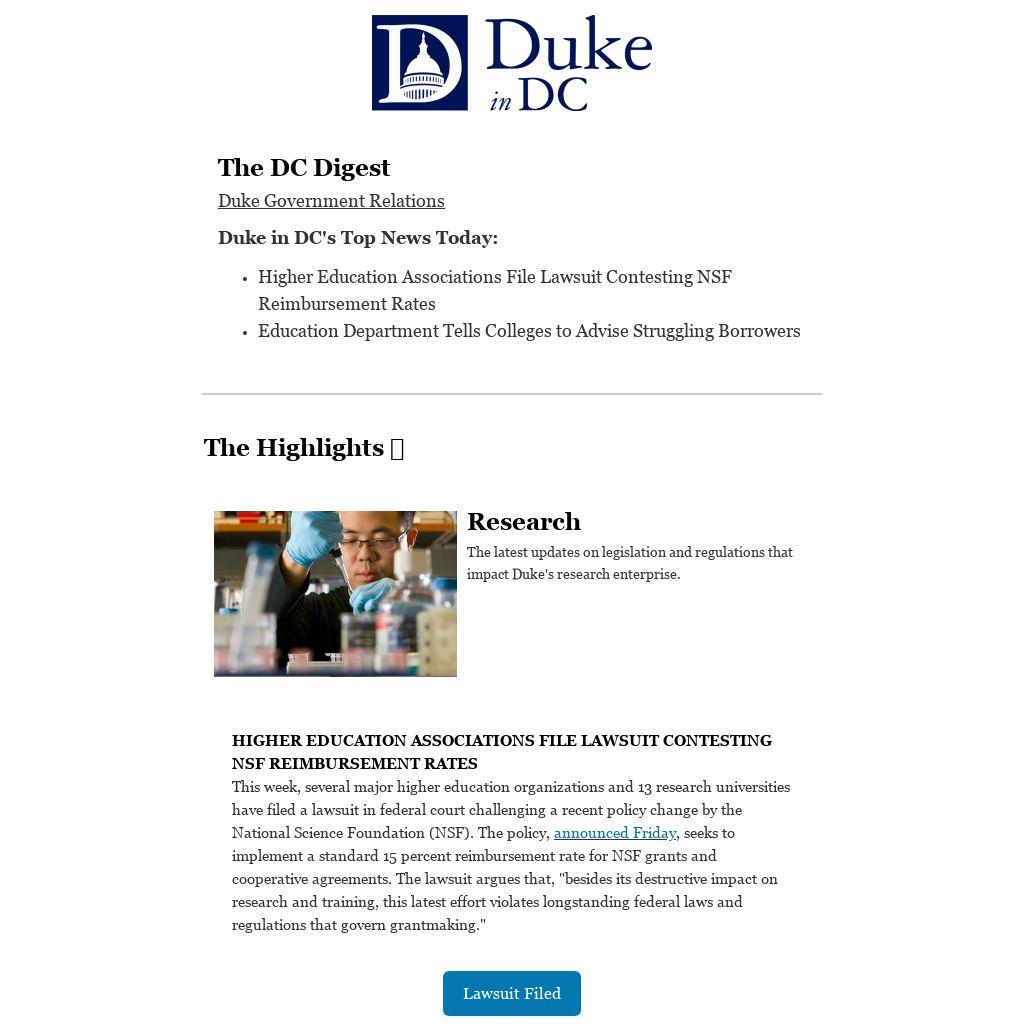 This week, several major higher education organizations and 13 research universities have filed a lawsuit in federal court challenging a recent policy change by the National Science Foundation (NSF). The policy, announced Friday, seeks to implement a standard 15 percent reimbursement rate for NSF grants and cooperative agreements. The lawsuit argues that, "besides its destructive impact on research and training, this latest effort violates longstanding federal laws and regulations that govern grantmaking."