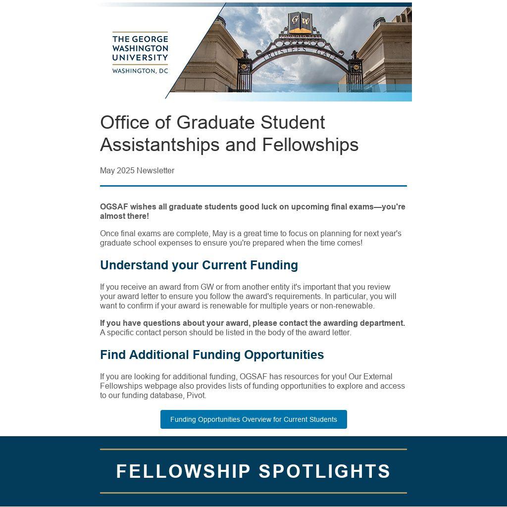 The Office of Graduate Student Assistantships and Fellowships serves as a resource for graduate students looking for funding opportunities at the George Washington University.