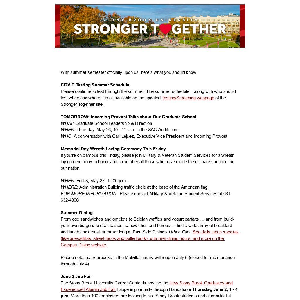 Contact us at strongertogether@stonybrook.edu with any questions/comments/ideas.