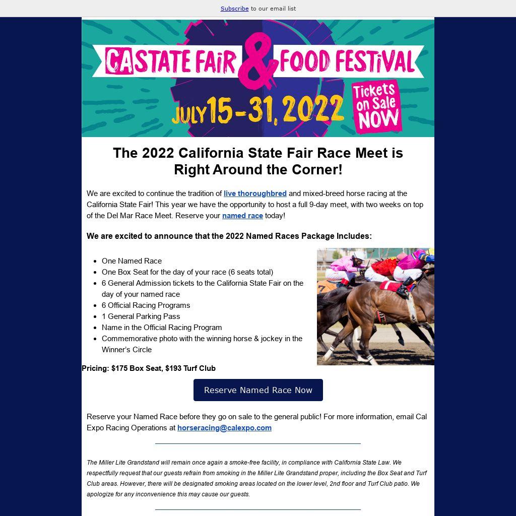 The Miller Lite Grandstand will remain once again a smoke-free facility, in compliance with California State Law. We respectfully request that our guests refrain from smoking in the Miller Lite Grandstand proper, including the Box Seat and Turf Club areas. However, there will be designated smoking areas located on the lower level, 2nd floor and Turf Club patio. We apologize for any inconvenience this may cause our guests.