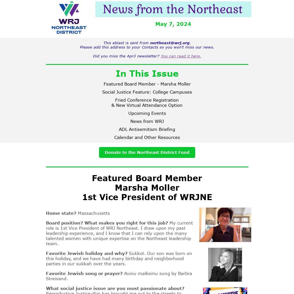 This eblast is sent from northeast@wrj.org.