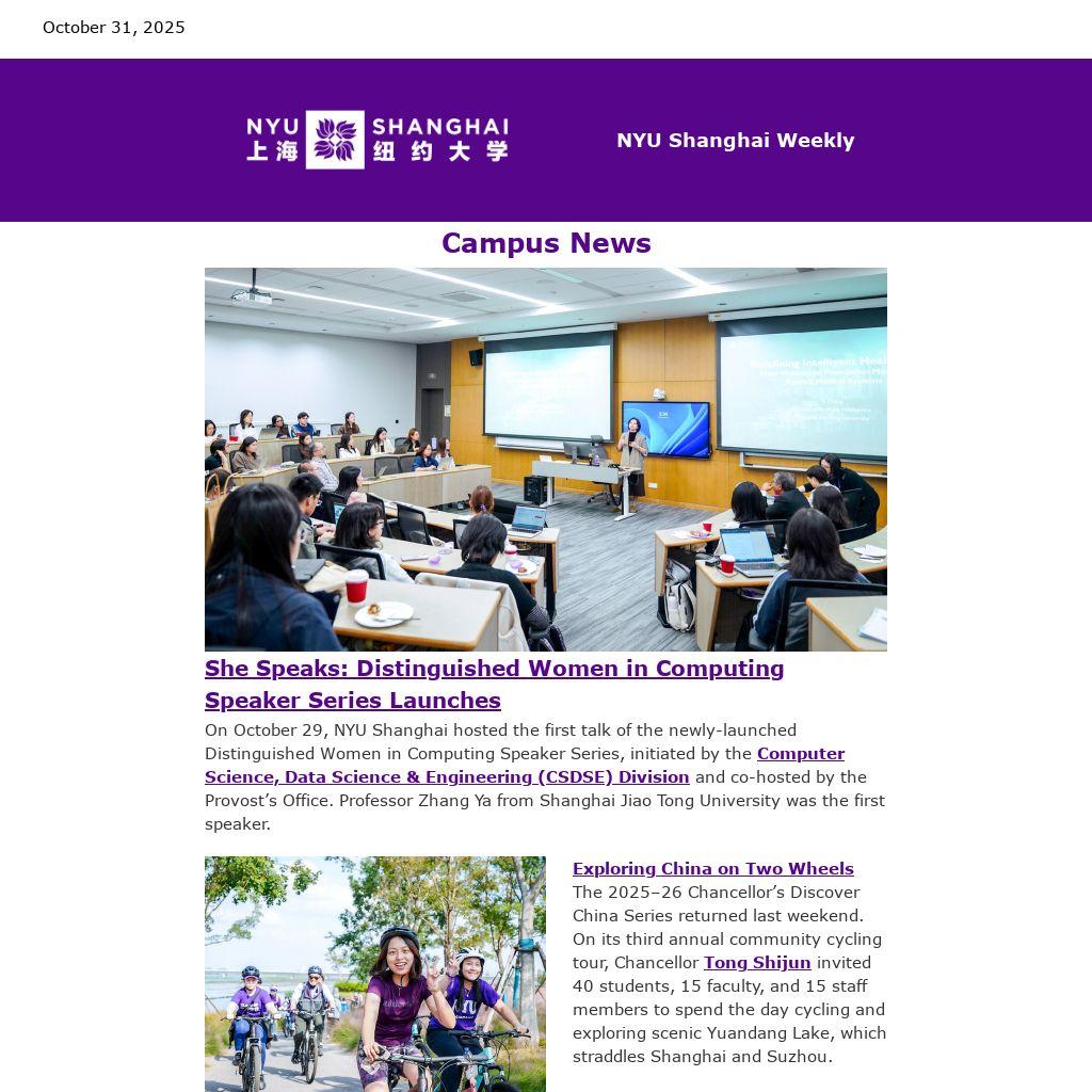 • On October 26, NYU Shanghai’s Chinese Language Program and Global China Studies co-hosted China Insight, Global Impact: A Dialogue on Language, Culture and Global Exchange, featuring Princeton University Professor Chih-p’ing Chou, NYU Shanghai Professors