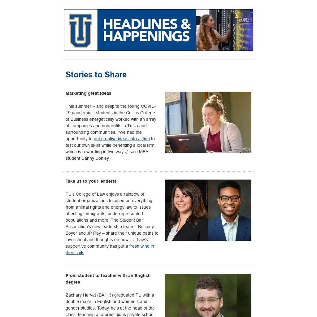 Zachary Harvat (BA ’13) graduated TU with a double major in English and women’s and gender studies. Today, he’s at the head of the class, teaching at a prestigious private school just outside the nation’s capital. “English is timeless and gives you a set of skills that are going to be useful no matter what field you go into. Bosses everywhere need people who can communicate well, who can think critically, who can participate and who respect others.”