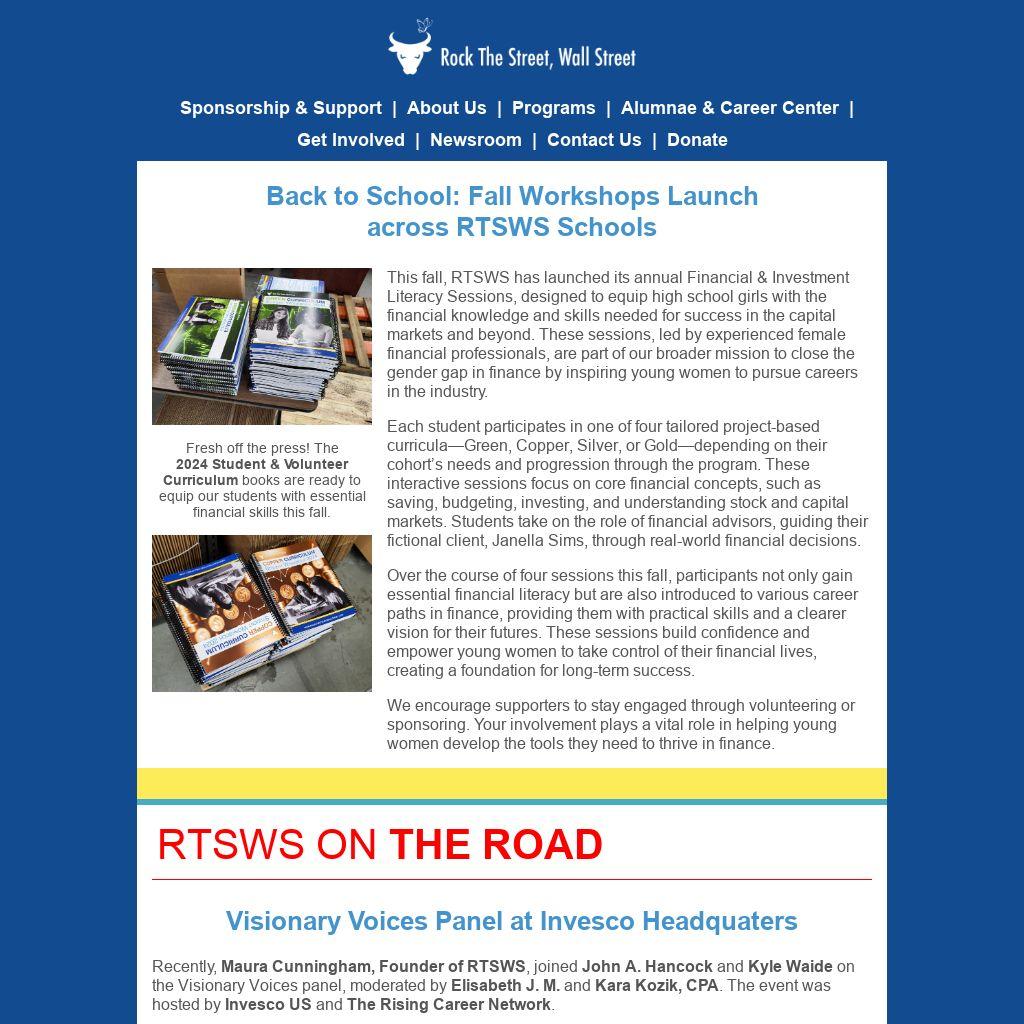 This fall, RTSWS has launched its annual Financial & Investment Literacy Sessions, designed to equip high school girls with the financial knowledge and skills needed for success in the capital markets and beyond. These sessions, led by experienced female financial professionals, are part of our broader mission to close the gender gap in finance by inspiring young women to pursue careers in the industry.