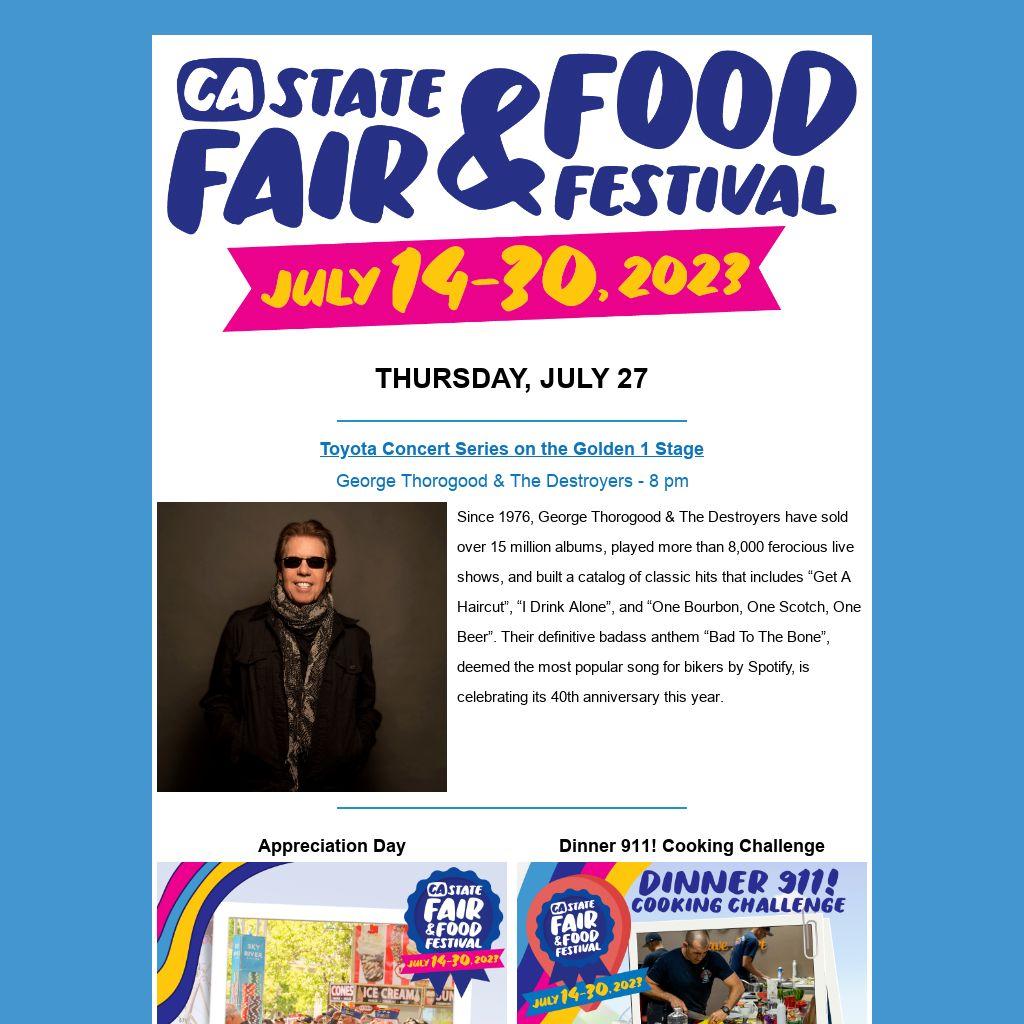 Military, Veterans, and First Responders face off in a live cooking challenge at the Save Mart California’s Kitchen preparing a 3-course meal with a mystery ingredient in front of a live fair audience and a panel of qualified judges.