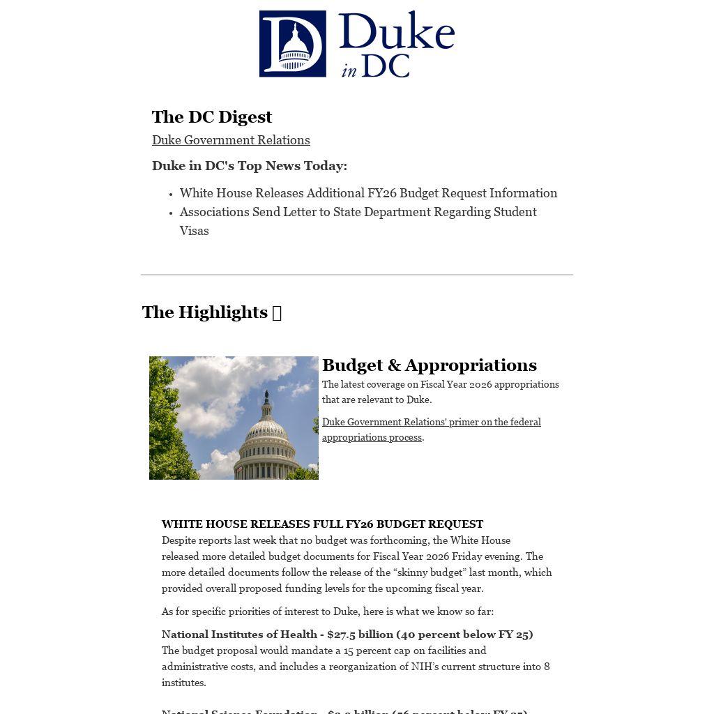 WHITE HOUSE RELEASES FULL FY26 BUDGET REQUEST