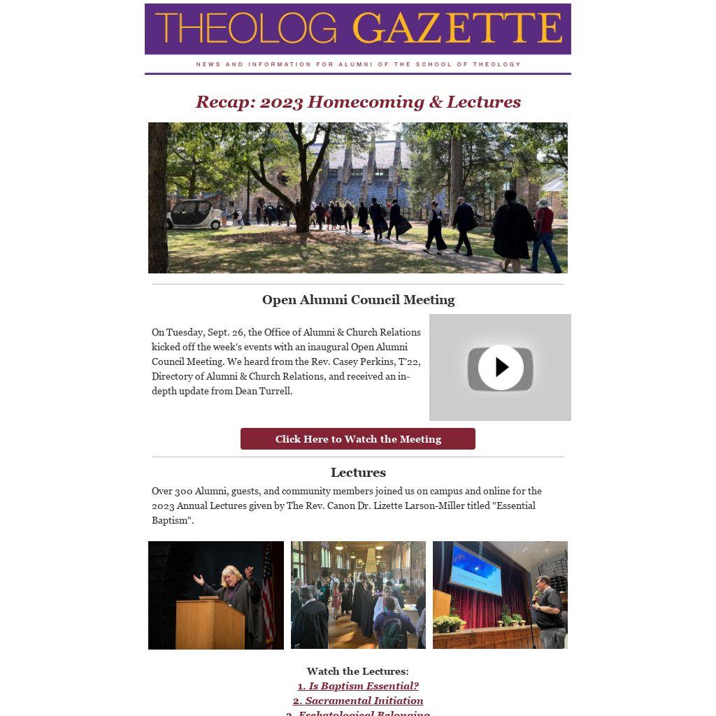 On Tuesday, Sept. 26, the Office of Alumni & Church Relations kicked off the week's events with an inaugural Open Alumni Council Meeting. We heard from the Rev. Casey Perkins, T'22, Directory of Alumni & Church Relations, and received an in-depth update from Dean Turrell.