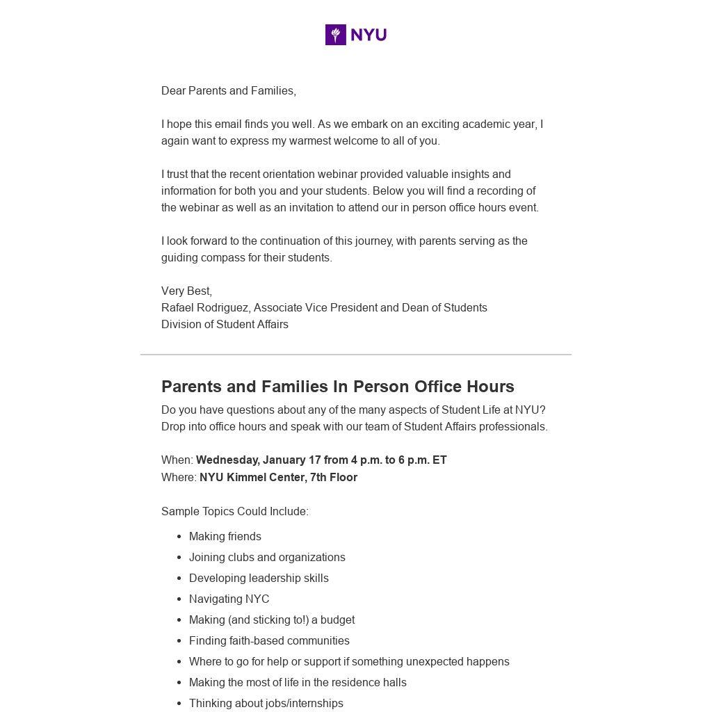 I trust that the recent orientation webinar provided valuable insights and information for both you and your students. Below you will find a recording of the webinar as well as an invitation to attend our in person office hours event.