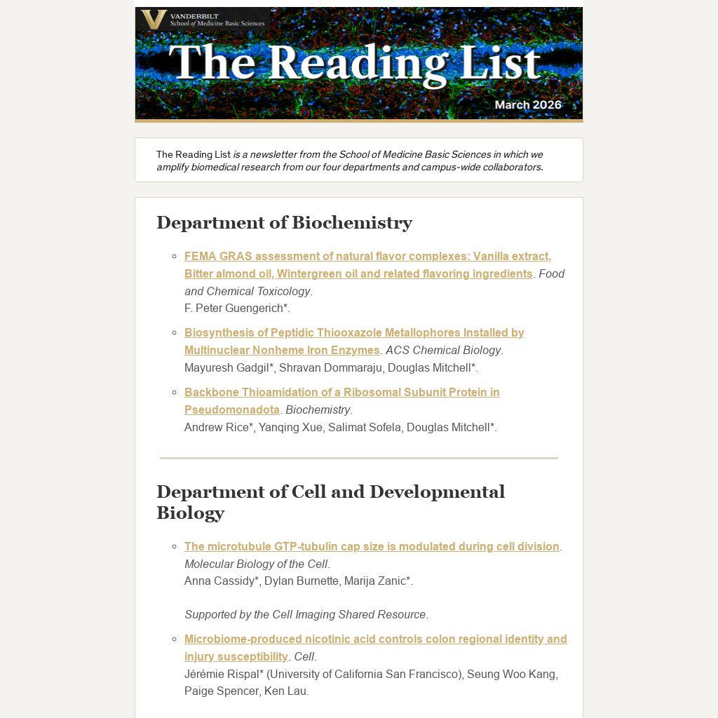 The Reading List is a newsletter from the School of Medicine Basic Sciences in which we amplify biomedical research from our four departments and campus-wide collaborators.