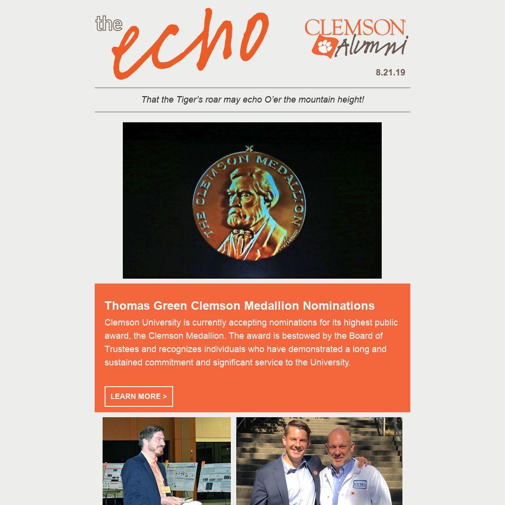 Thomas Green Clemson Medallion Nominations Clemson University is currently accepting nominations for its highest public award, the Clemson Medallion. The award is bestowed by the Board of Trustees and recognizes individuals who have demonstrated a long and sustained commitment and significant service to the University.