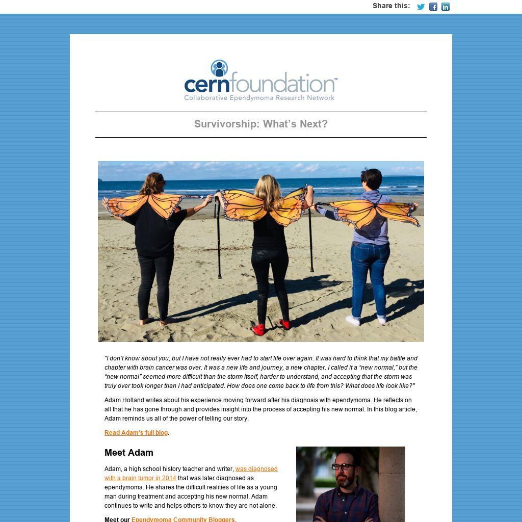 Adam Holland writes about his experience moving forward after his diagnosis with ependymoma. He reflects on all that he has gone through and provides insight into the process of accepting his new normal. In this blog article, Adam reminds us all of the power of telling our story.