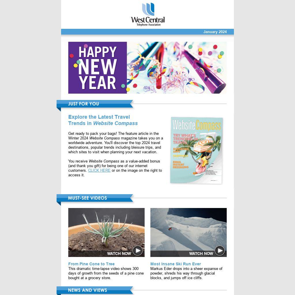 Explore the Latest Travel Trends in Website Compass Get ready to pack your bags! The feature article in the Winter 2024 Website Compass magazine takes you on a worldwide adventure. You'll discover the top 2024 travel destinations, popular trends including bleisure trips, and which sites to visit when planning your next vacation. You receive Website Compass as a value-added bonus (and thank you gift) for being one of our internet customers. CLICK HERE or on the image on the right to access it. |