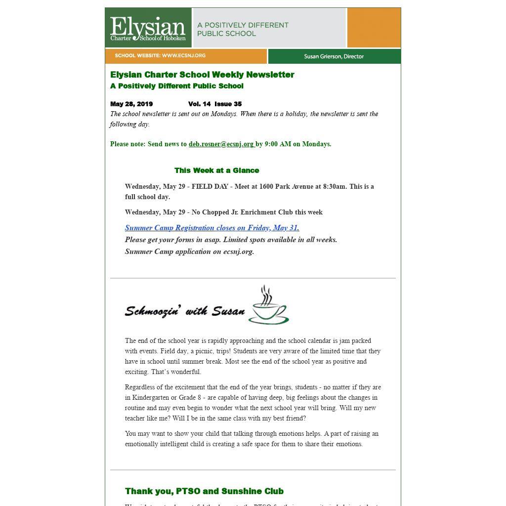 YEAR END PICNIC - The Elysian annual picnic is Wednesday, June 5. Every family is asked to bring something to help make this a success (please see flyer below!). We also need volunteers! Sign up here: https://www.signupgenius.com/go/30E0C44A4A629A2F49-year2