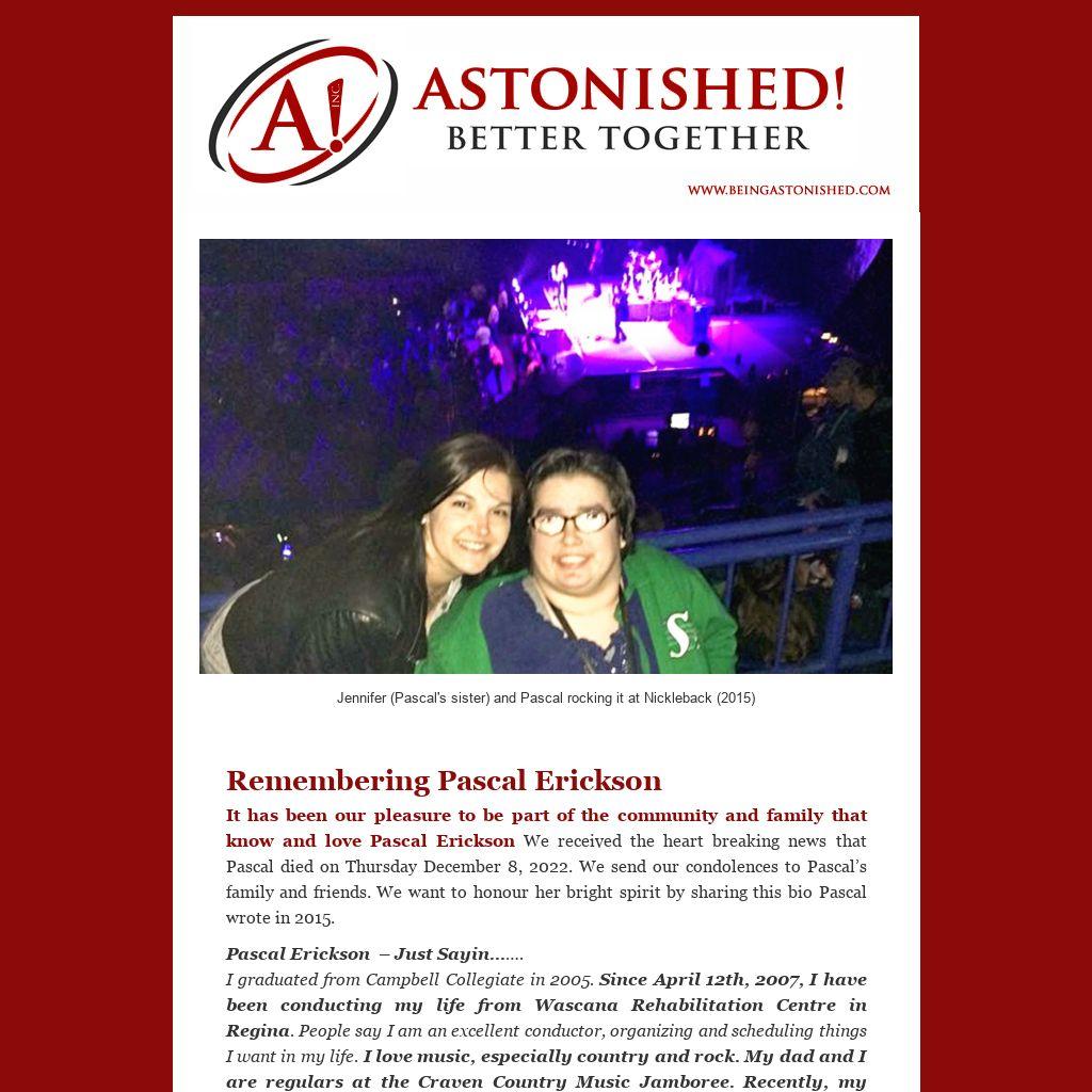 It has been our pleasure to be part of the community and family that know and love Pascal Erickson We received the heart breaking news that Pascal died on Thursday December 8, 2022. We send our condolences to Pascal’s family and friends. We want to honour her bright spirit by sharing this bio Pascal wrote in 2015.