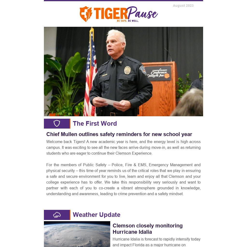 For the members of Public Safety – Police, Fire & EMS, Emergency Management and physical security – this time of year reminds us of the critical roles that we play in ensuring a safe and secure environment for you to live, learn and enjoy all that Clemson and your college experience has to offer. We take this responsibility very seriously and want to partner with each of you to co-create a vibrant atmosphere grounded in knowledge, understanding and awareness, leading to crime prevention and a safety mindset.