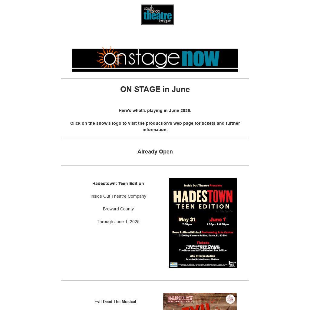 This email blast and other programs of the South Florida Theatre League are made possible with the support of Miami-Dade County Department of Cultural Affairs and the Cultural Affairs Council, the Miami-Dade County Mayor and Board of County Commissioners.