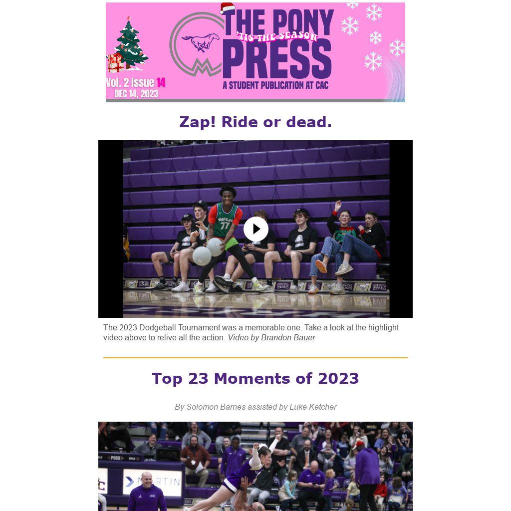 The Winter Intercom Olympics have been a student-favorite on Mustang Mountain. Every other day during the 12 Days of Christmas spirit event, students have had the chance to complete a series of questions, in a timely manner for a chance to win a prize.