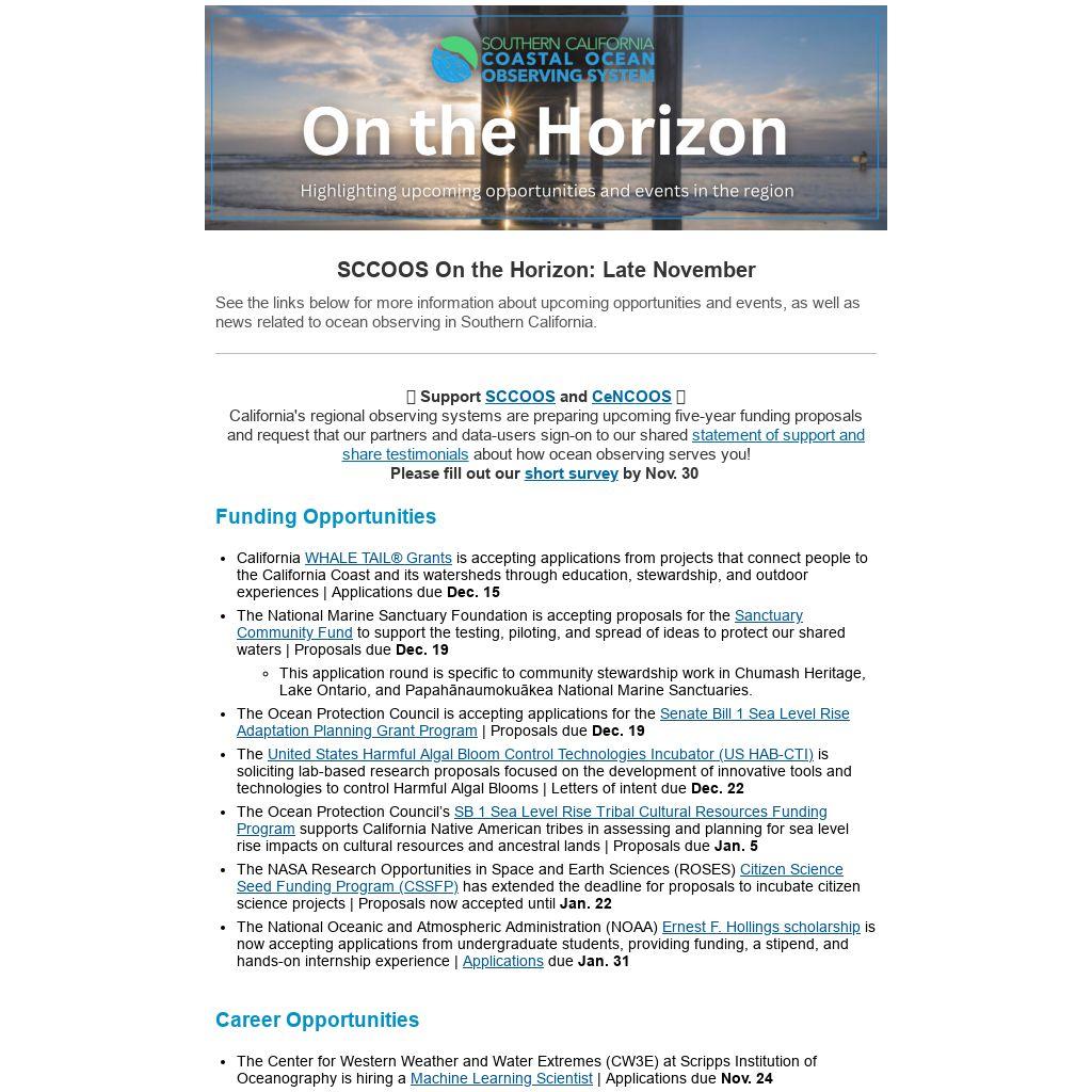Share your upcoming event, opportunity, or news by emailing us at info@SCCOOS.org!