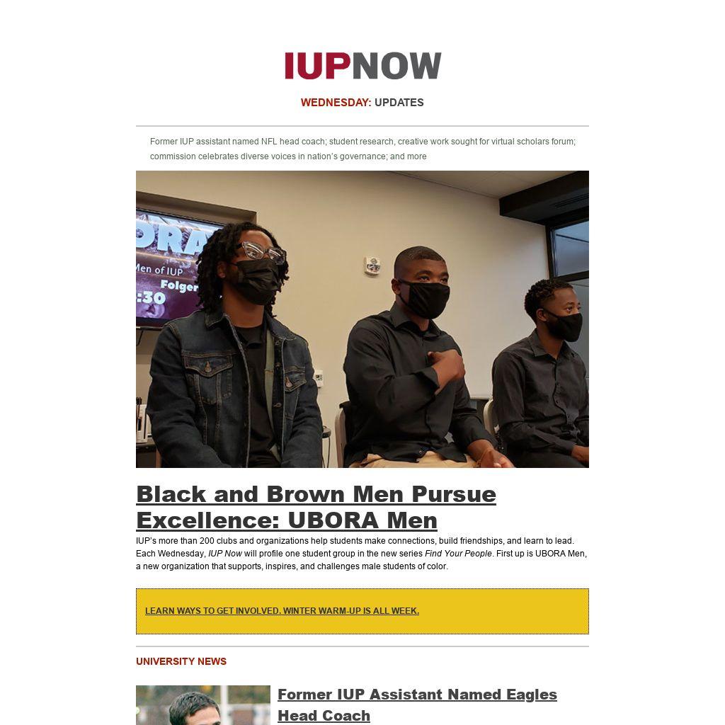 Distributed to IUP employees and students four days a week, IUP Now is the official newsletter of Indiana University of Pennsylvania. It features news from across the IUP website, compiled by the Division of Marketing and Communications. Find out how to get your news and events in IUP Now.