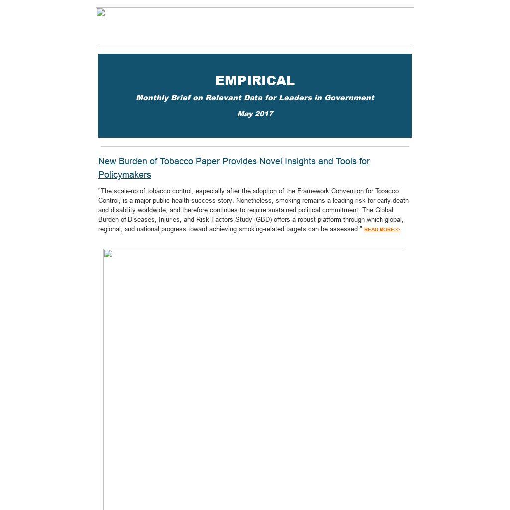 "The scale-up of tobacco control, especially after the adoption of the Framework Convention for Tobacco Control, is a major public health success story. Nonetheless, smoking remains a leading risk for early death and disability worldwide, and therefore continues to require sustained political commitment. The Global Burden of Diseases, Injuries, and Risk Factors Study (GBD) offers a robust platform through which global, regional, and national progress toward achieving smoking-related targets can be assessed." READ MORE>>