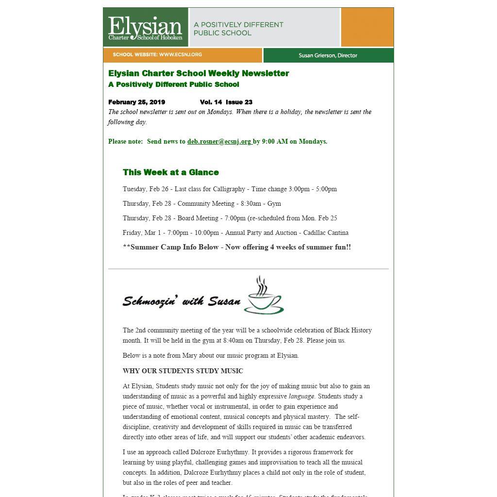 Elysian Charter School Weekly Newsletter