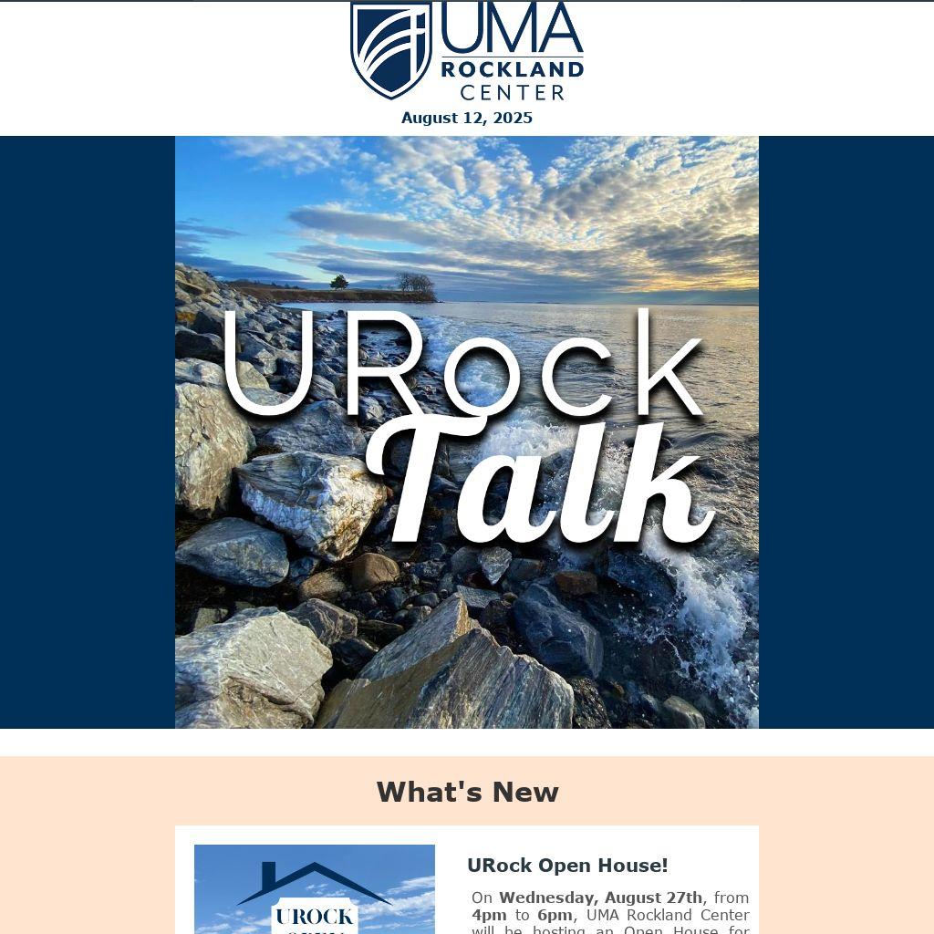 UMA Rockland Center will be at the Rockland Farmer's Market at Harbor Park on Thursday, August 14th, from 9am to 1pm. Come stop by, get some free swag, and ask any questions you might have about UMA.