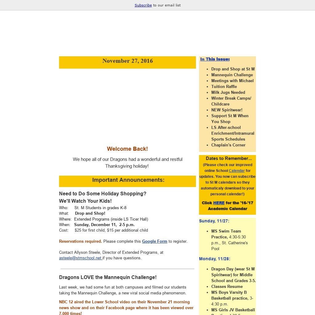 | Dates to Remember...(Please check our improved online School Calendar for updates. You now can subscribe to St M calendars so they automaticaly download to your personal calendar!) Click HERE for the '16-'17 Academic Calendar