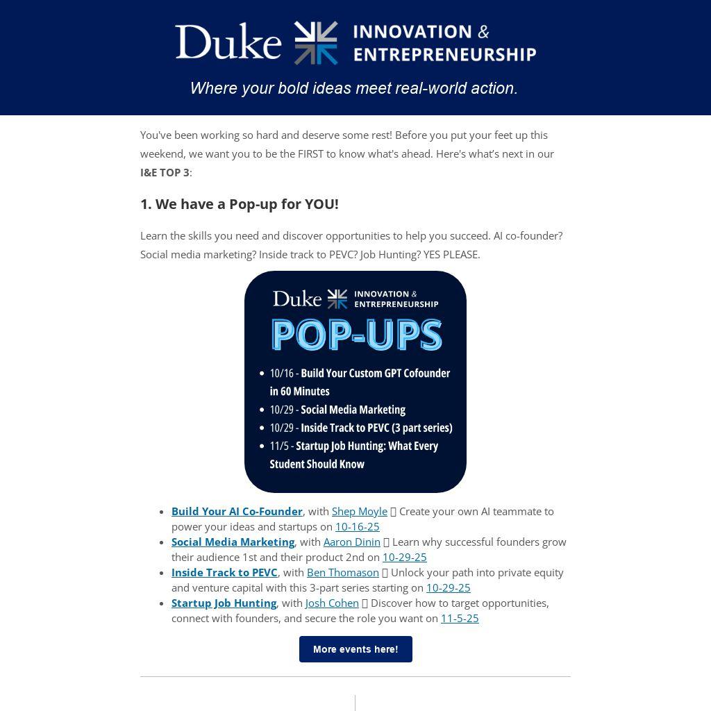 2. The Duke I&E Certificate Deadline is 10/19/25 β° TICK TOCK β°