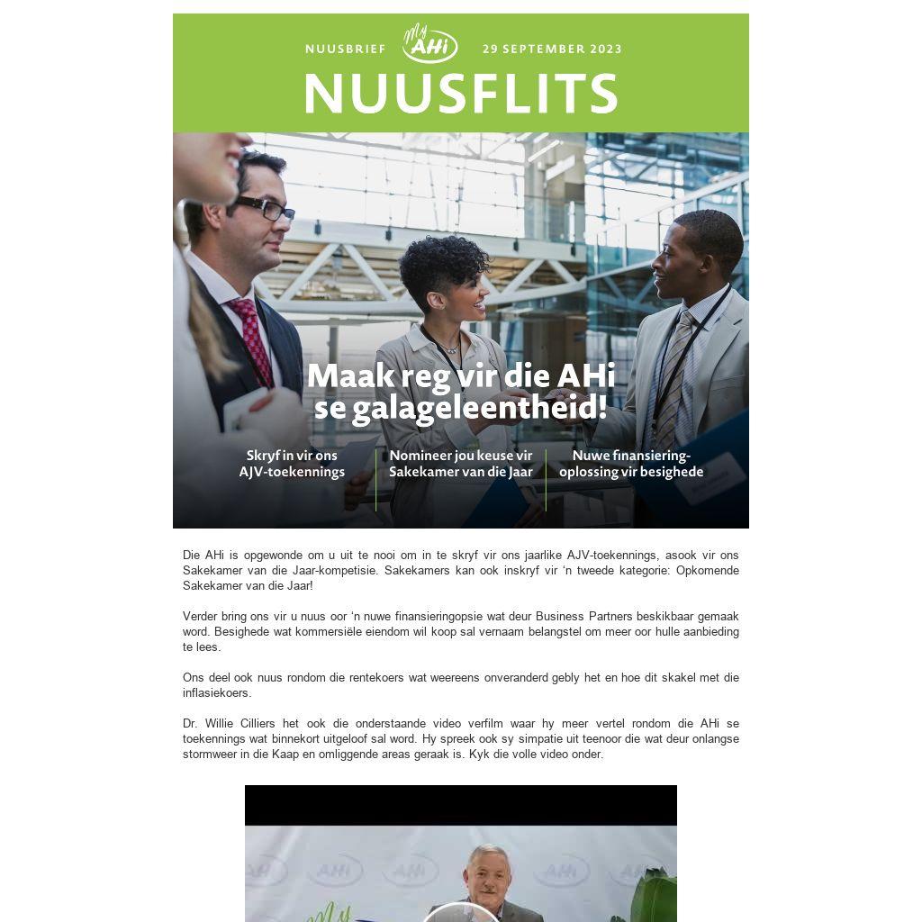 Dr. Willie Cilliers het ook die onderstaande video verfilm waar hy meer vertel rondom die AHi se toekennings wat binnekort uitgeloof sal word. Hy spreek ook sy simpatie uit teenoor die wat deur onlangse stormweer in die Kaap en omliggende areas geraak is. Kyk die volle video onder.