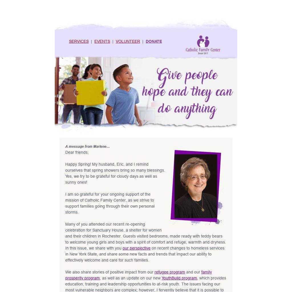 I am so grateful for your ongoing support of the mission of Catholic Family Center, as we strive to support families going through their own personal storms.