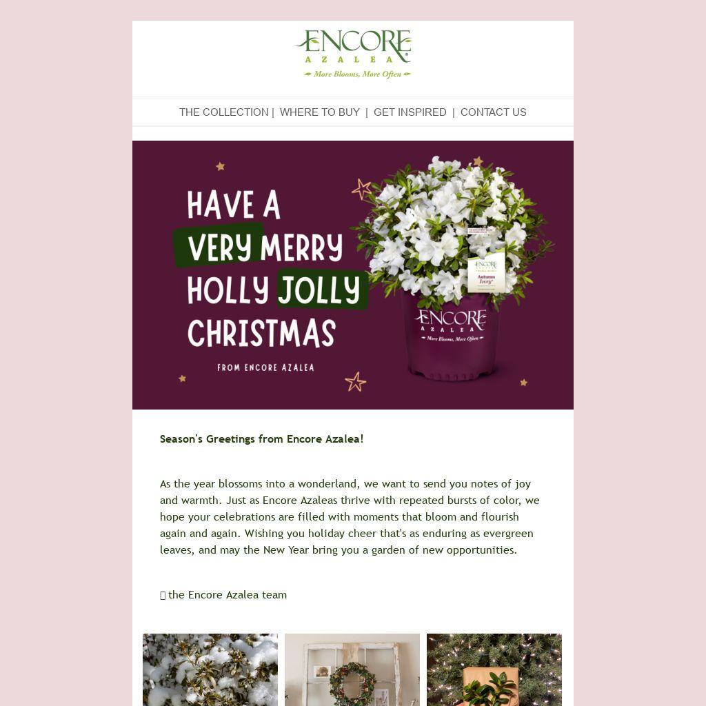 As the year blossoms into a wonderland, we want to send you notes of joy and warmth. Just as Encore Azaleas thrive with repeated bursts of color, we hope your celebrations are filled with moments that bloom and flourish again and again. Wishing you holiday cheer that's as enduring as evergreen leaves, and may the New Year bring you a garden of new opportunities.