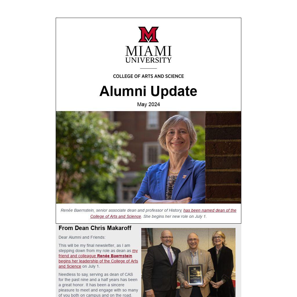 In other news, we are excited to announce that Kris Bahner '92, a longtime friend of CAS, will be our alumni guest speaker at the CAS Recognition Ceremony on May 18. Kris majored in Speech Communications and Public Relations and is currently senior vice president of global corporate affairs for Kellanova (formerly Kellogg Company).