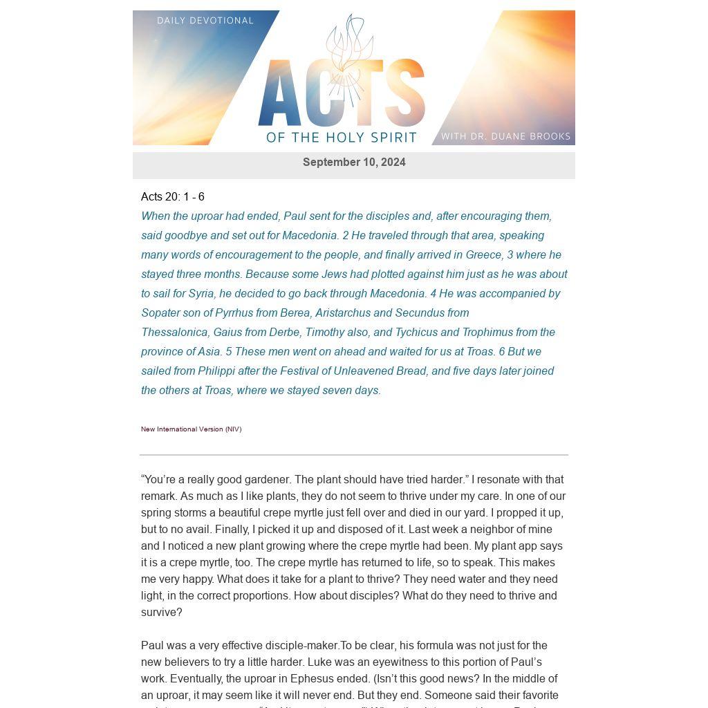 Paul was a very effective disciple-maker.To be clear, his formula was not just for the new believers to try a little harder. Luke was an eyewitness to this portion of Paul’s work. Eventually, the uproar in Ephesus ended. (Isn’t this good news? In the middle of an uproar, it may seem like it will never end. But they end. Someone said their favorite scripture passage says, “And it came to pass.”) When the rioters went home, Paul called the disciples and encouraged them. Then he went back to Macedonia (Philippi, Thessalonica, and Berea) and spoke many words of encouragement. To be sure, disciples have to be encouraged in order to survive. Whenever possible, Paul and Barnabas always went back and encouraged the disciples.