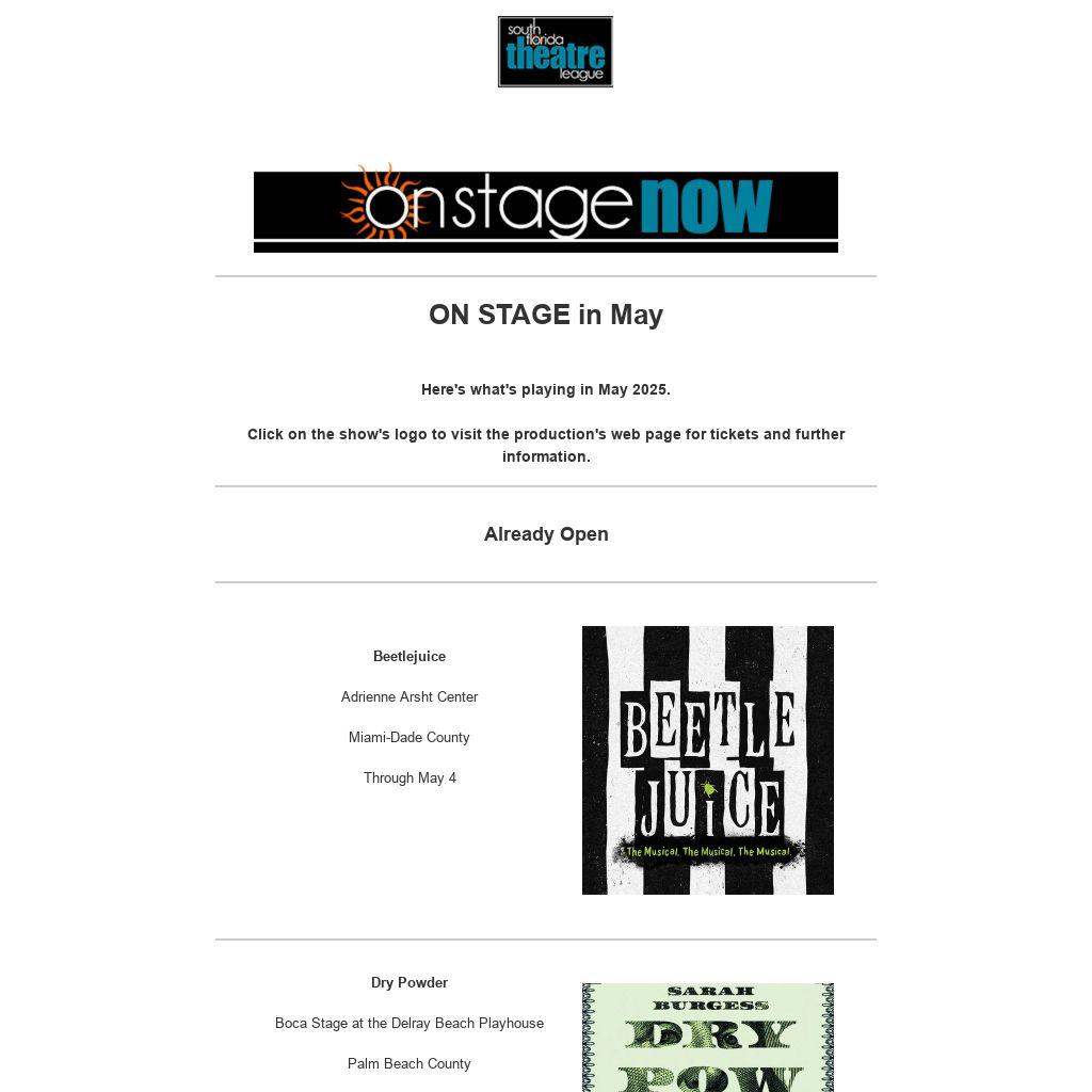 This email blast and other programs of the South Florida Theatre League are made possible with the support of Miami-Dade County Department of Cultural Affairs and the Cultural Affairs Council, the Miami-Dade County Mayor and Board of County Commissioners.