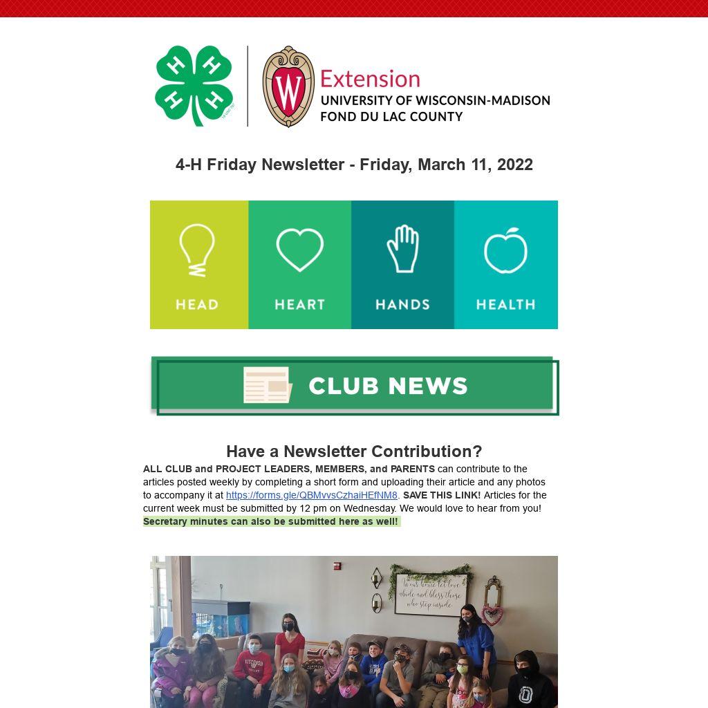 4-H Friday Newsletter - Friday, March 11, 2022