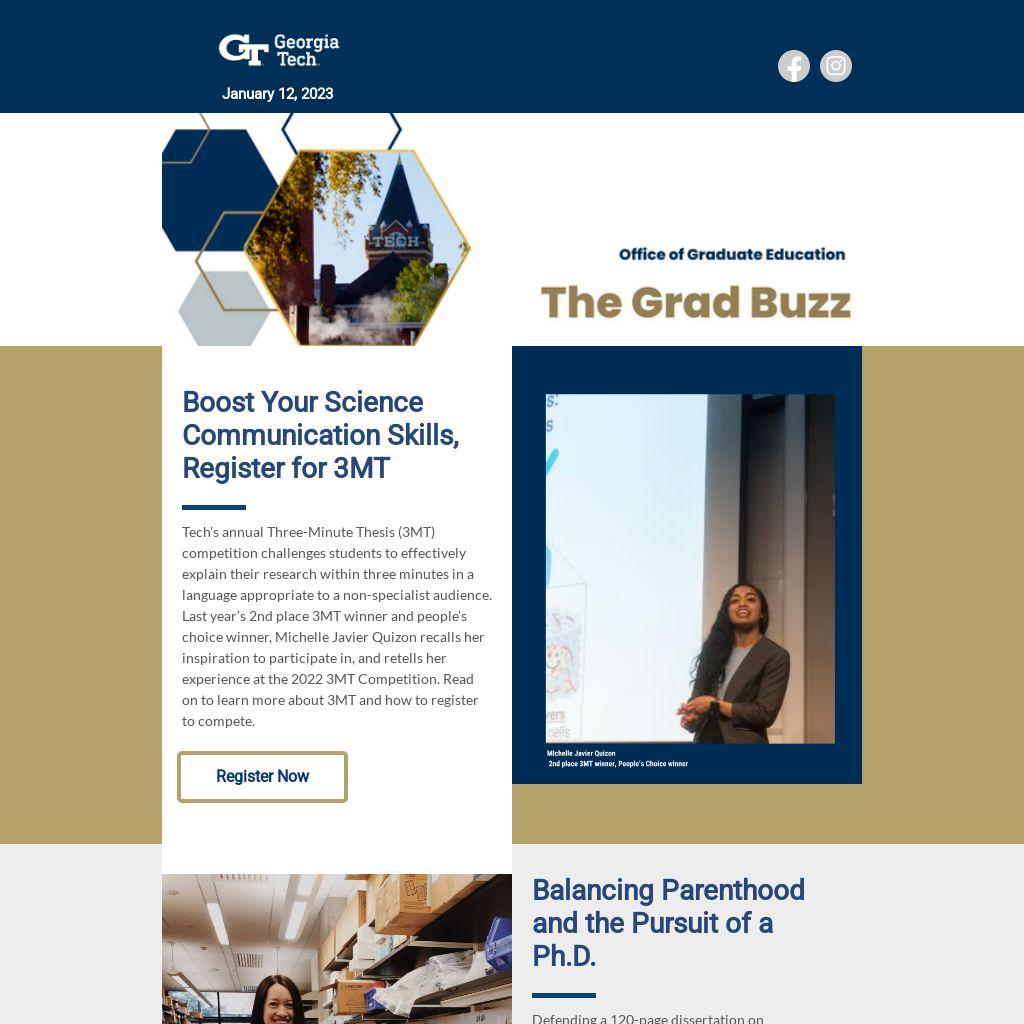 Tech’s annual Three-Minute Thesis (3MT) competition challenges students to effectively explain their research within three minutes in a language appropriate to a non-specialist audience. Last year’s 2nd place 3MT winner and people’s choice winner, Michelle Javier Quizon recalls her inspiration to participate in, and retells her experience at the 2022 3MT Competition. Read on to learn more about 3MT and how to register to compete.