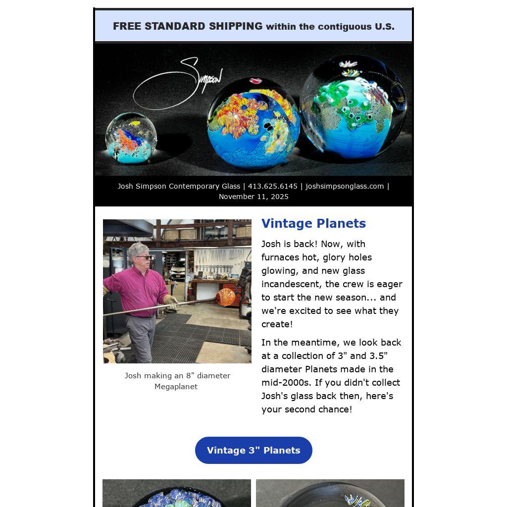In the meantime, we look back at a collection of 3" and 3.5" diameter Planets made in the mid-2000s. If you didn't collect Josh's glass back then, here's your second chance!