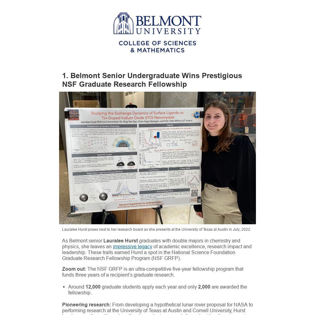 1. Belmont Senior Undergraduate Wins Prestigious NSF Graduate Research Fellowship |
