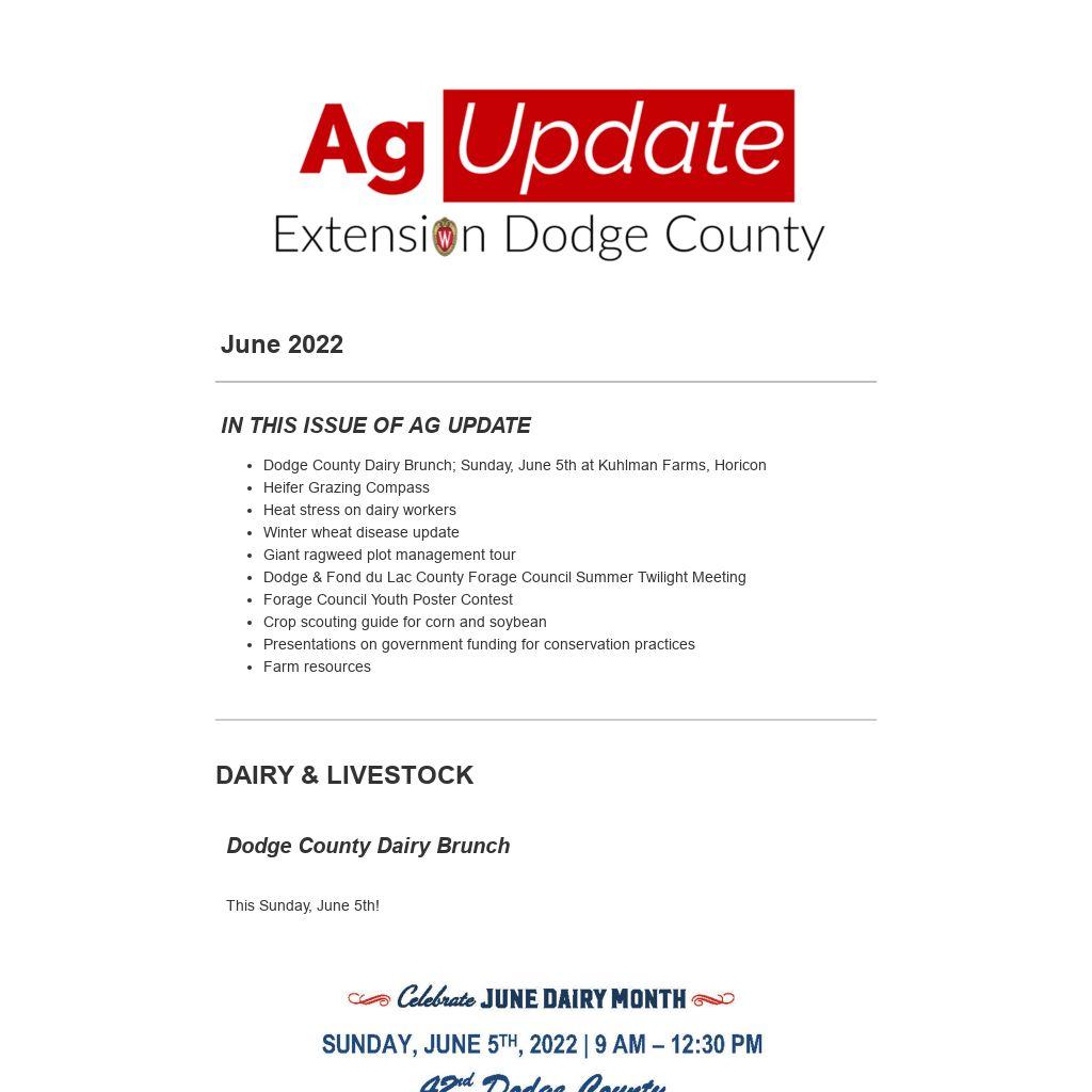 - Dodge County Dairy Brunch; Sunday, June 5th at Kuhlman Farms, Horicon
