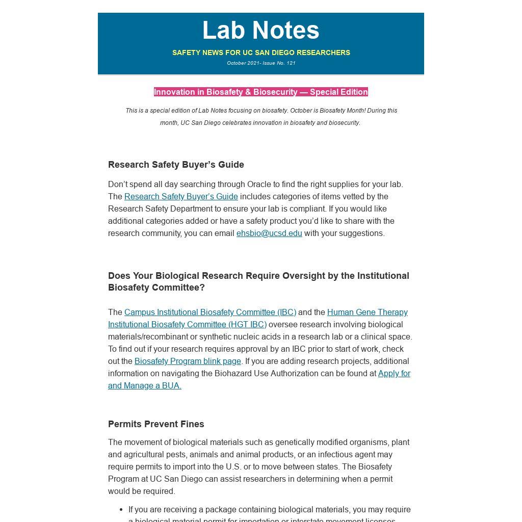 UC San Diego requires investigators to implement standard operating procedures using the Hazard Control Plan Application. Researchers are required to review, acknowledge, and adopt HCPs assigned by the investigator.