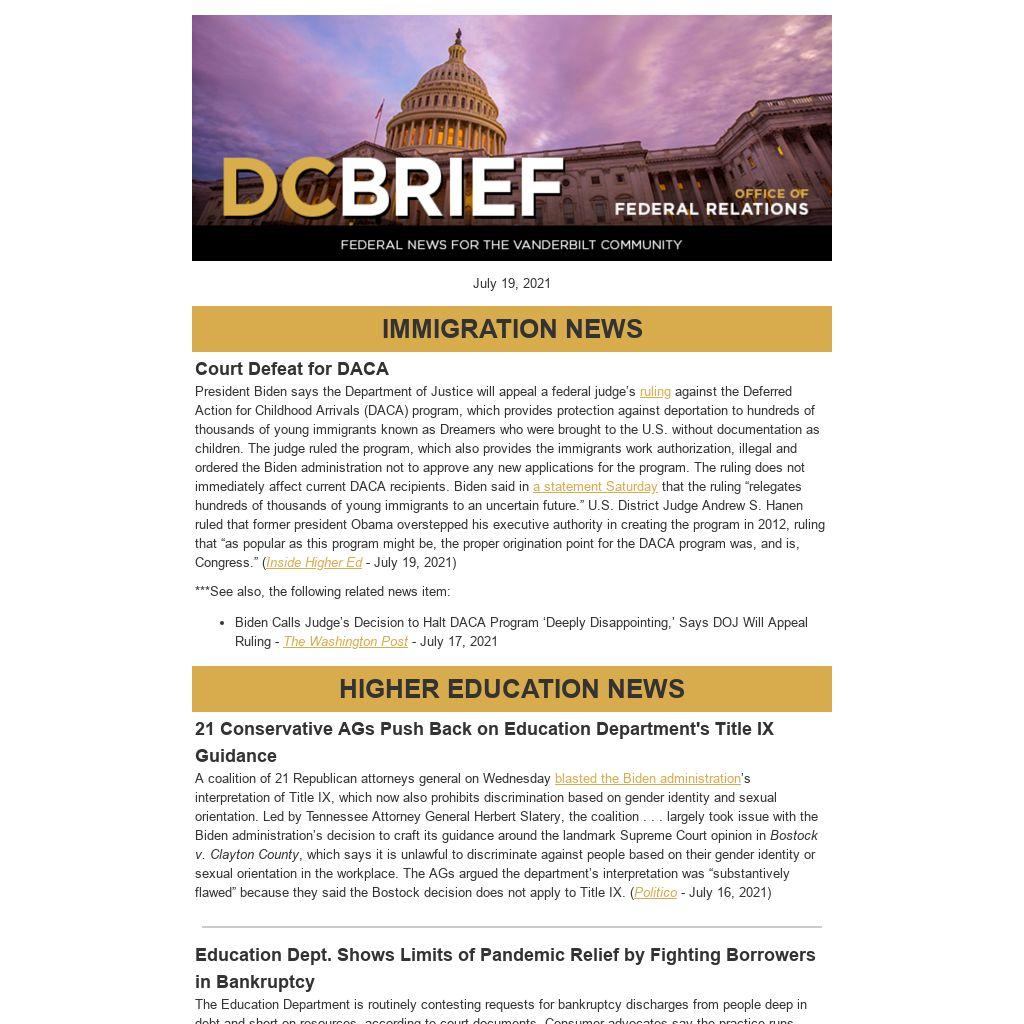 - Biden Calls Judge’s Decision to Halt DACA Program ‘Deeply Disappointing,’ Says DOJ Will Appeal Ruling - The Washington Post - July 17, 2021