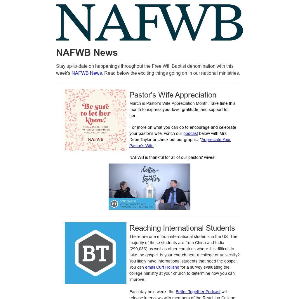 Share this newsletter with a friend and invite them to subscribe to receive all of our future emails. You can subscribe or find past newsletters at www.nafwb.org/news.
