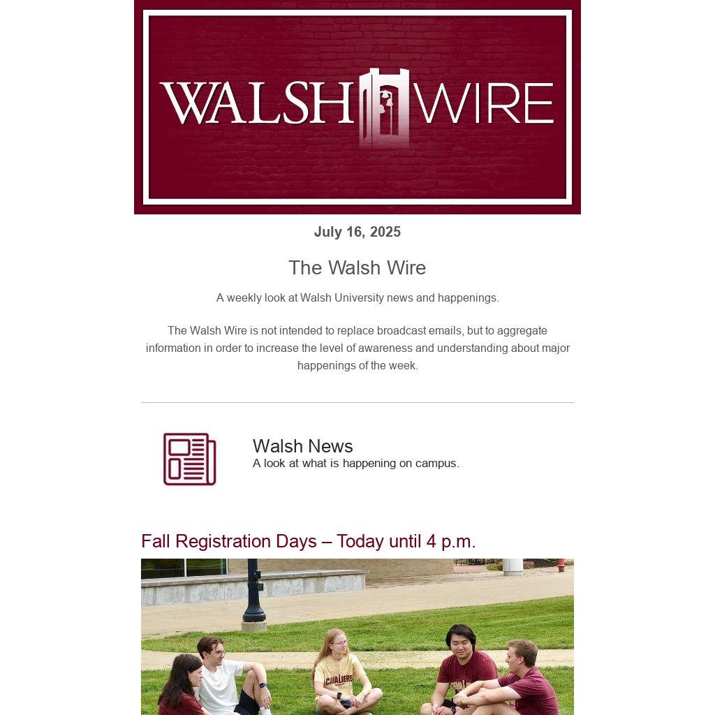 The Walsh Wire is not intended to replace broadcast emails, but to aggregate information in order to increase the level of awareness and understanding about major happenings of the week.