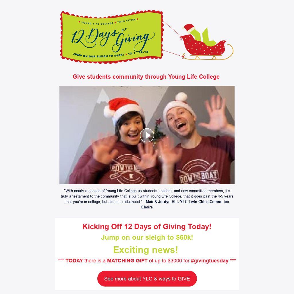 | "With nearly a decade of Young Life College as students, leaders, and now committee members, it’s truly a testament to the community that is built within Young Life College, that it goes past the 4-5 years that you’re in college, but also into adulthood." - Matt & Jordyn Hill, YLC Twin Cities Committee Chairs