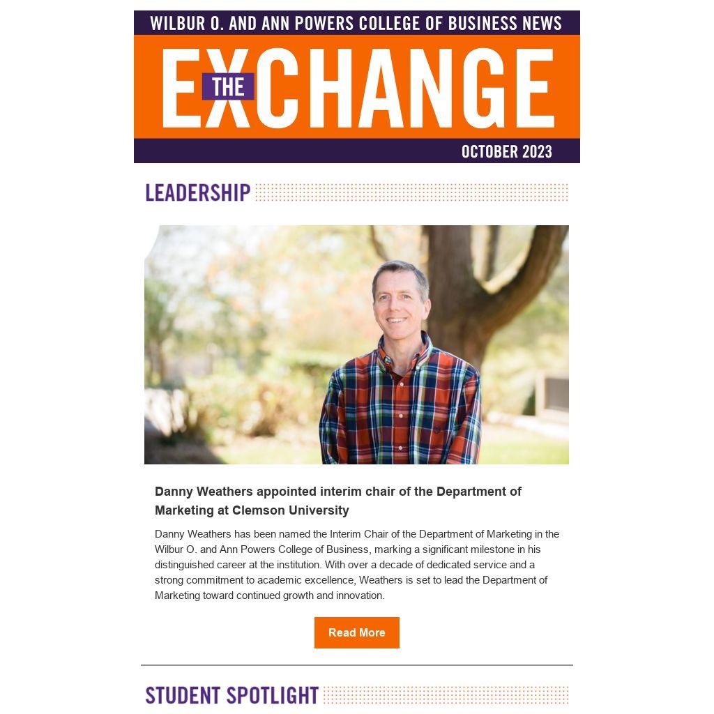 Danny Weathers appointed interim chair of the Department of Marketing at Clemson University